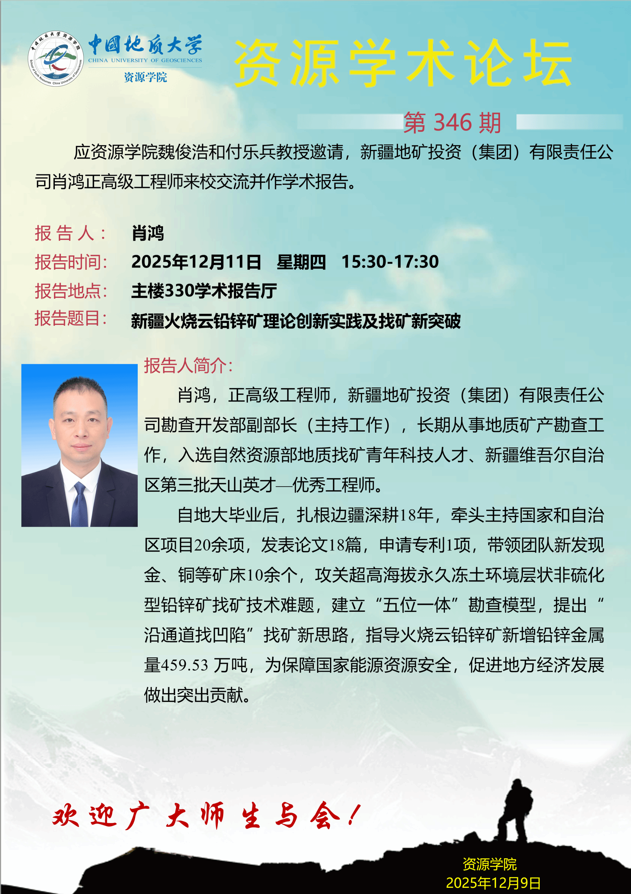 【12月11日】第346期资源学术论坛:肖鸿学术报告