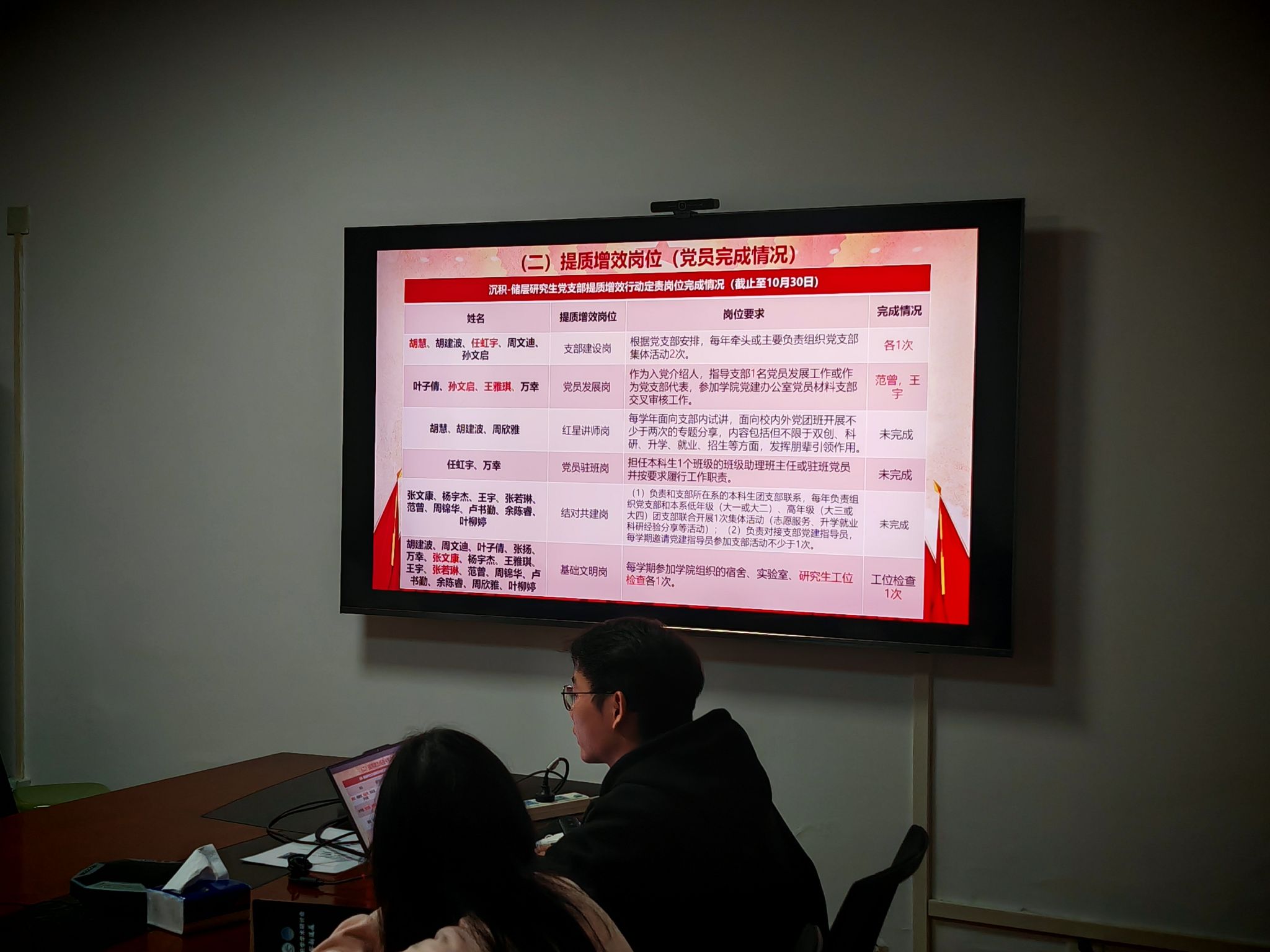 沉积-储层研究生党支部在老珠宝楼801会议室举行十月主题党日活动。活动以“学习中央全会精神,建言献策‘十五五’”为主题,结合学院“红星引领计划”,深入开展政治理论学习与党员履职交流。支部全体党员和部分入党积极分子参加。