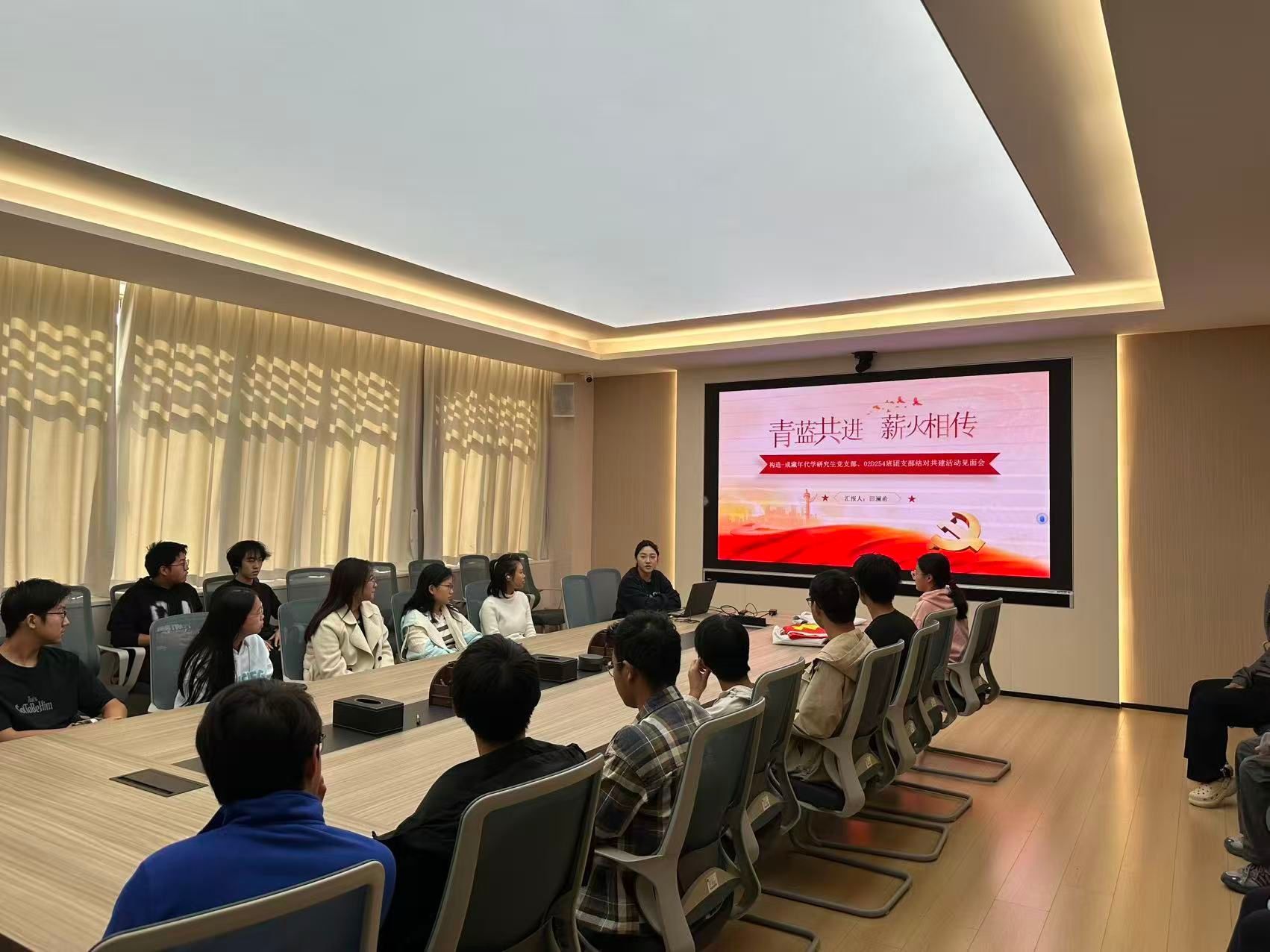 ,并展示其所属导学团队在理论学习、科研攻关与社会服务等方面取得的丰硕成果,生动阐释了“把支部建在科研团队上”的实践内涵。她表示,党支部不仅是科研创新的“突击队”,更是青年学子成长的“引路人”。她希望以此次结对共建为契机,推动党团组织在思想、学业、生活等多维度深度融合,最终实现“组织上结对、学习上帮扶、生活上互助、成长上并进”的目标。