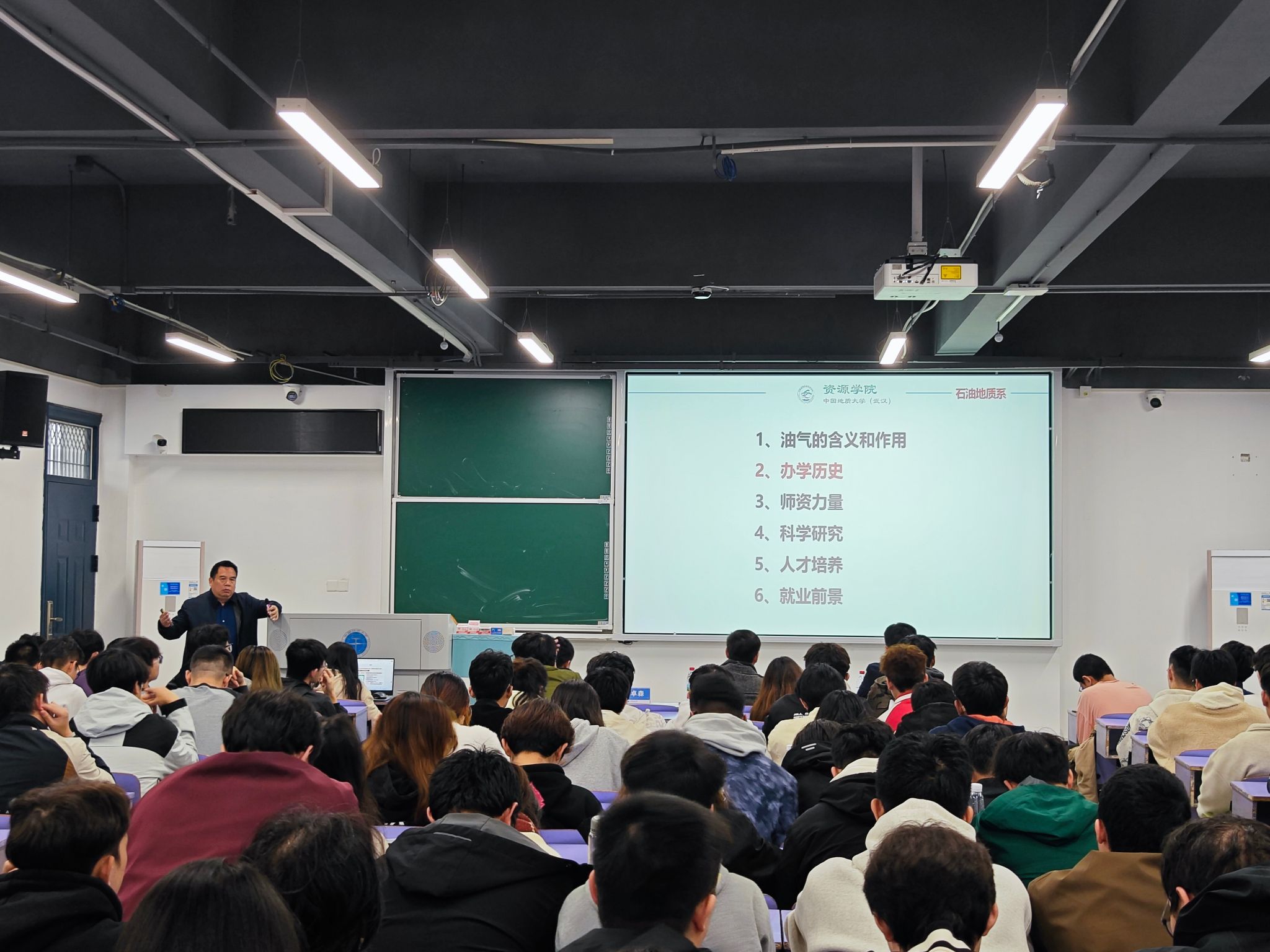 叶加仁作总结发言。他谈到,资源勘查工程作为全国排名第一的一流本科专业,为同学们成长成才奠定了坚实的基础。他鼓励同学们,在选择专业(方向)时,要结合自身专业研究兴趣、未来职业发展等因素,更要做好专业分流的“后半篇文章”,刻苦学习专业知识、锤炼专业技能,努力成为资源能源领域拔尖创新人才。