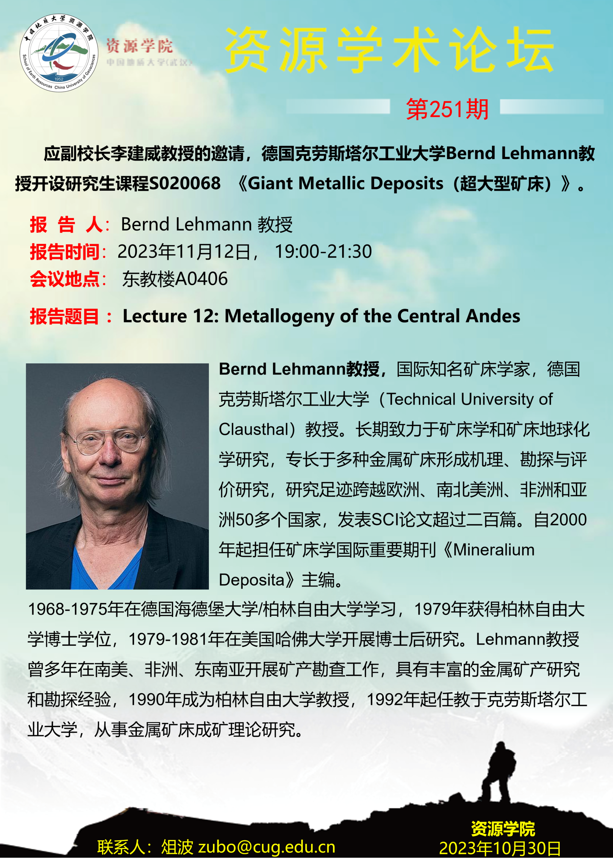 【11月12日】第251期资源学术论坛:Bernd Lehmann学术报告